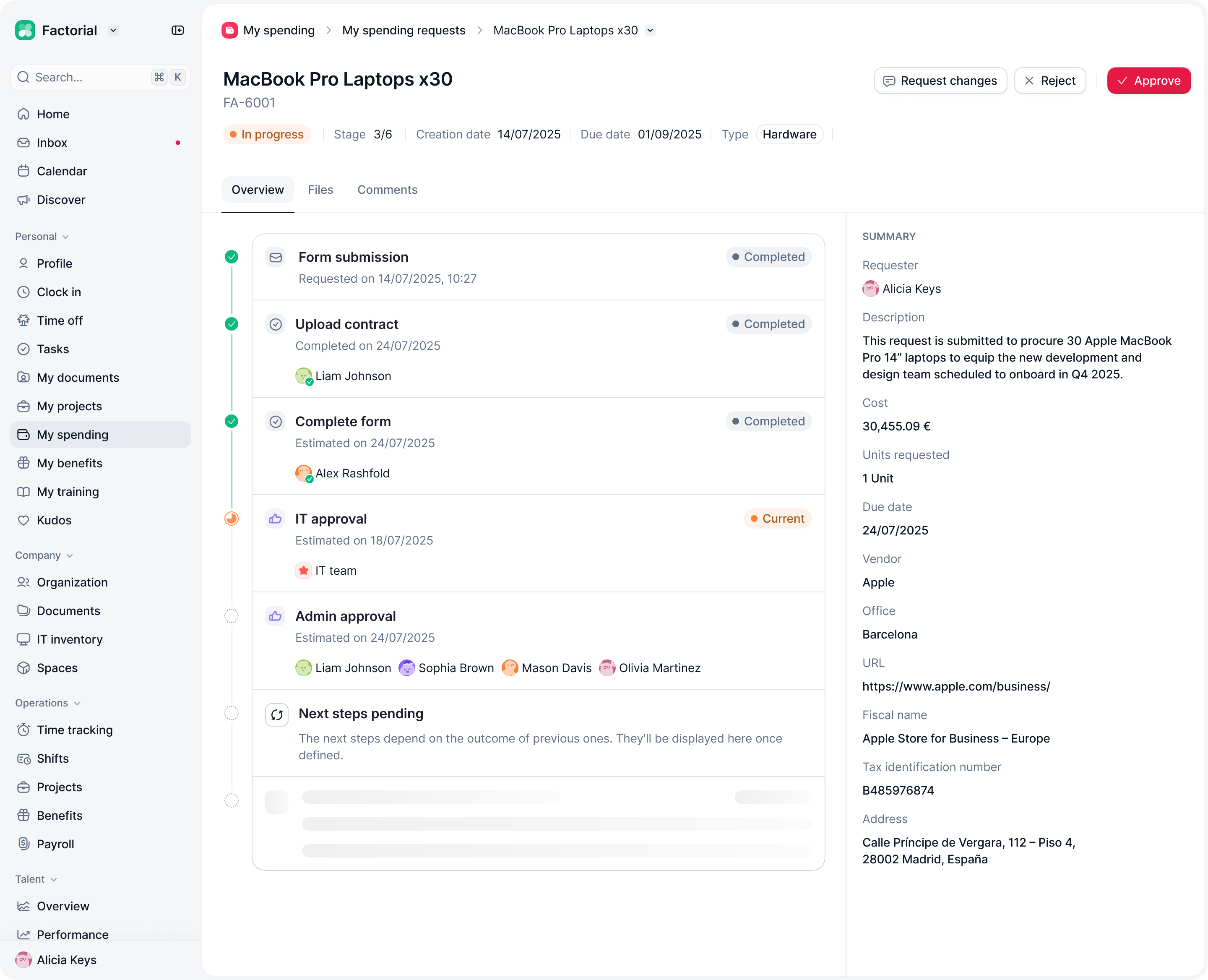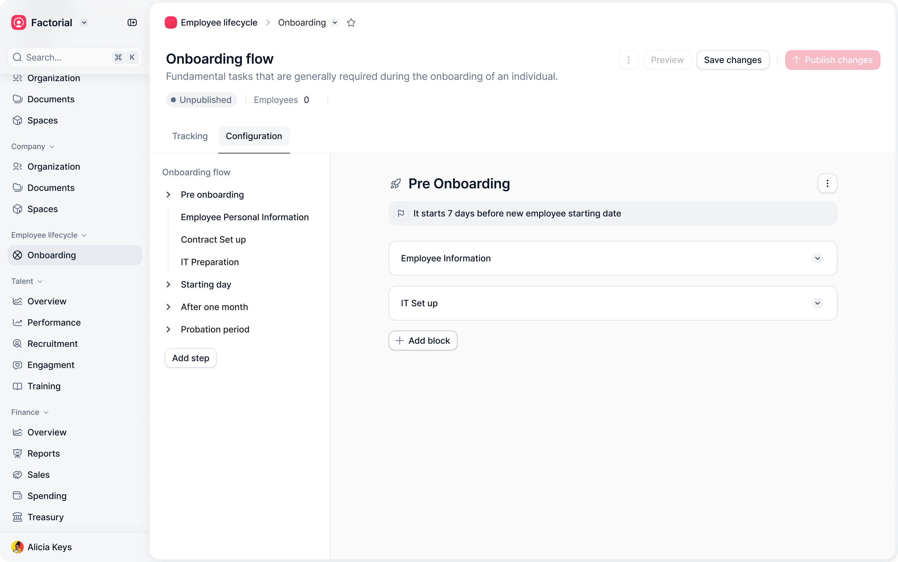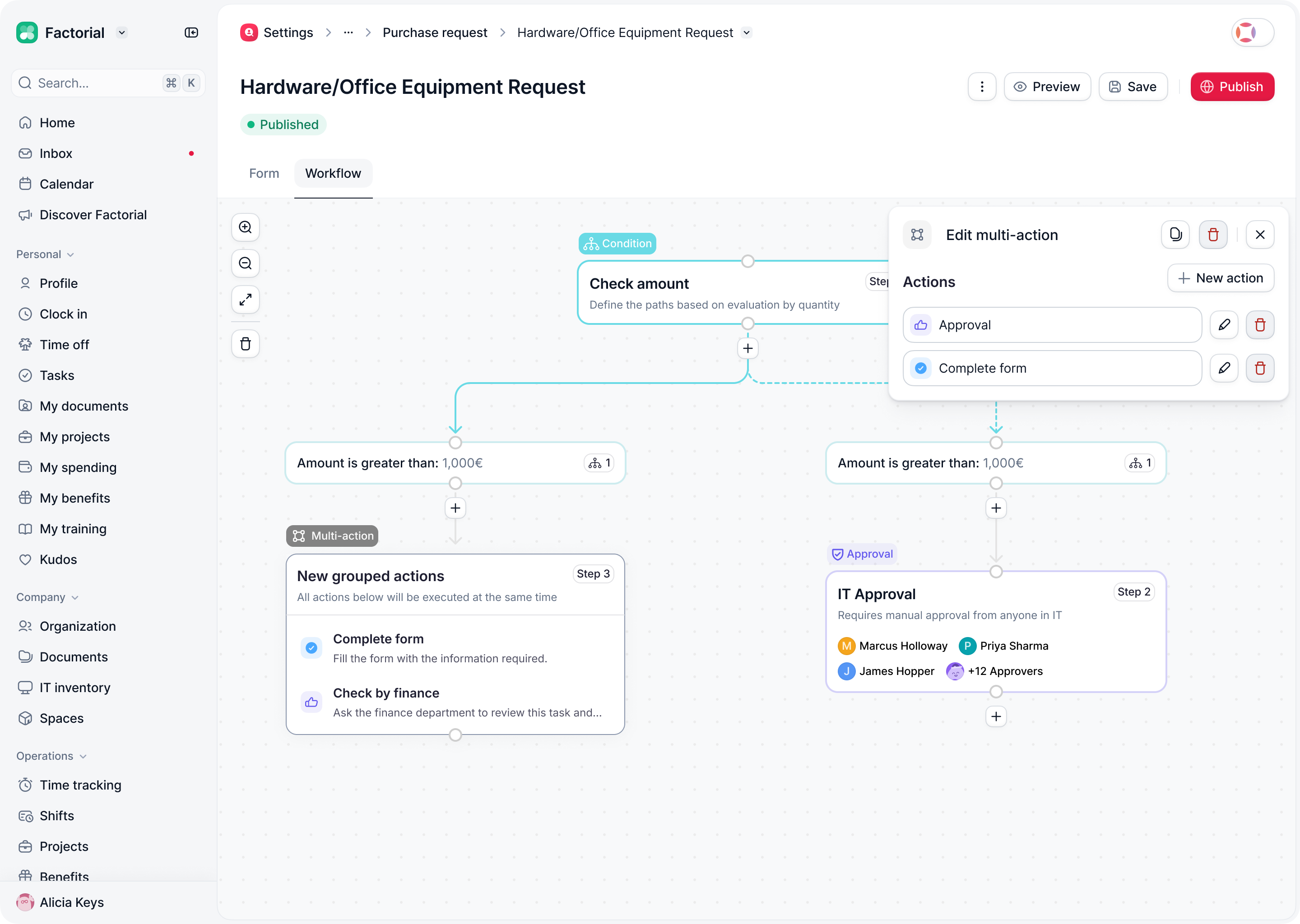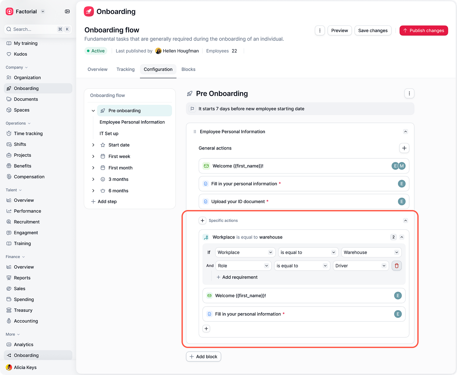Conditions didn’t behave like in Procurement. Most onboarding flows are identical, with small variations depending on the employee’s location, role, or contract type, but the main structure stays the same.