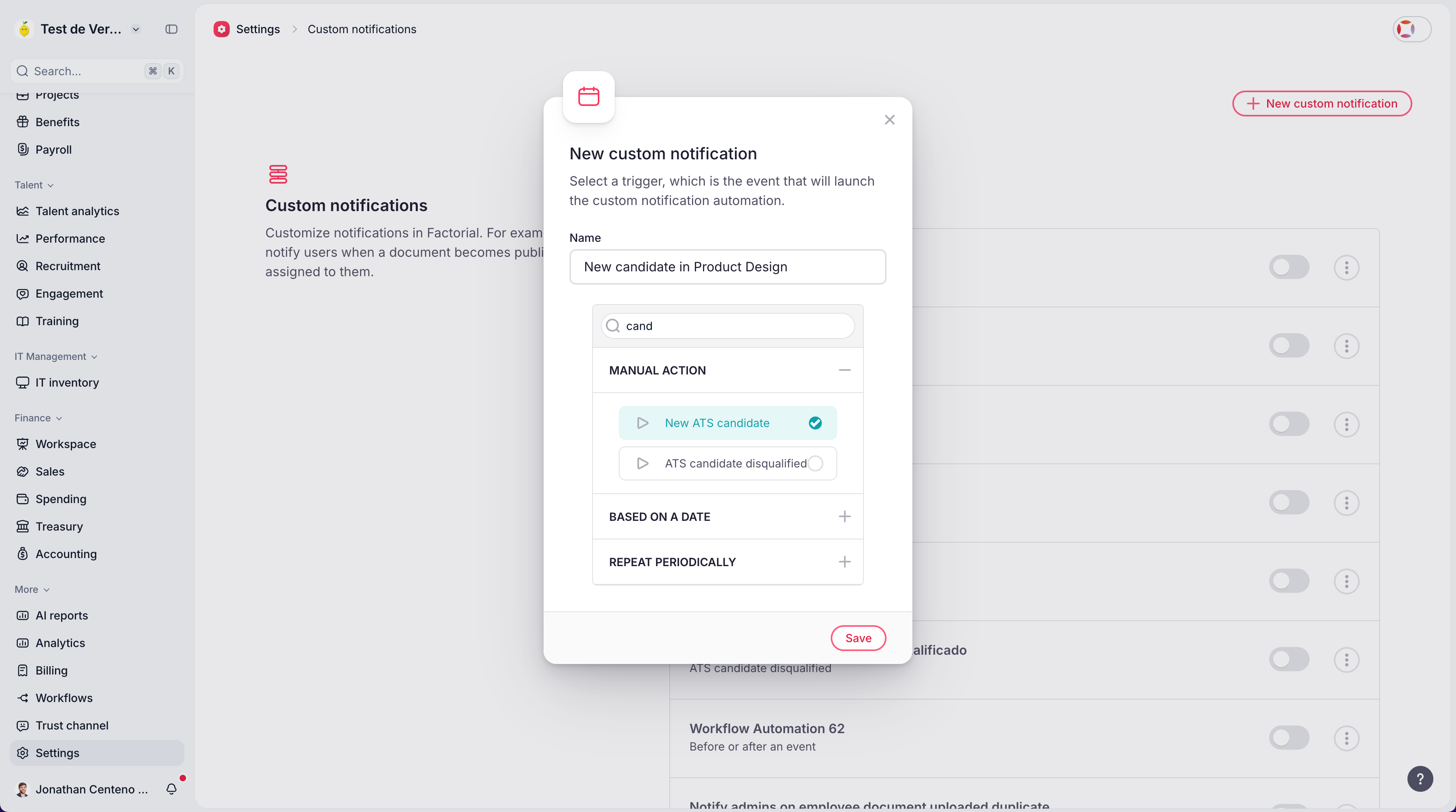 Create a notification for a recruiter when a new candidate enters the ATS.