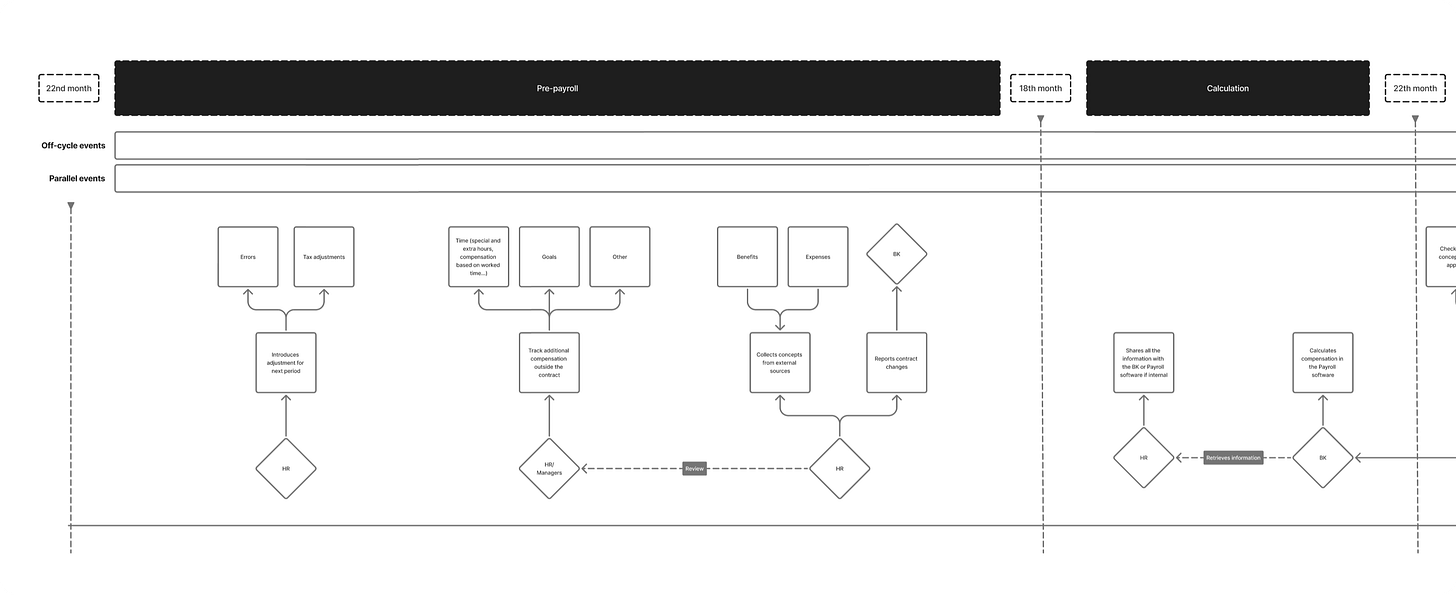 Here, design played a key role: instead of stopping at the obvious pain point, we used user research and stakeholder mapping to expand the picture. We spoke not only with HR admins, but also: