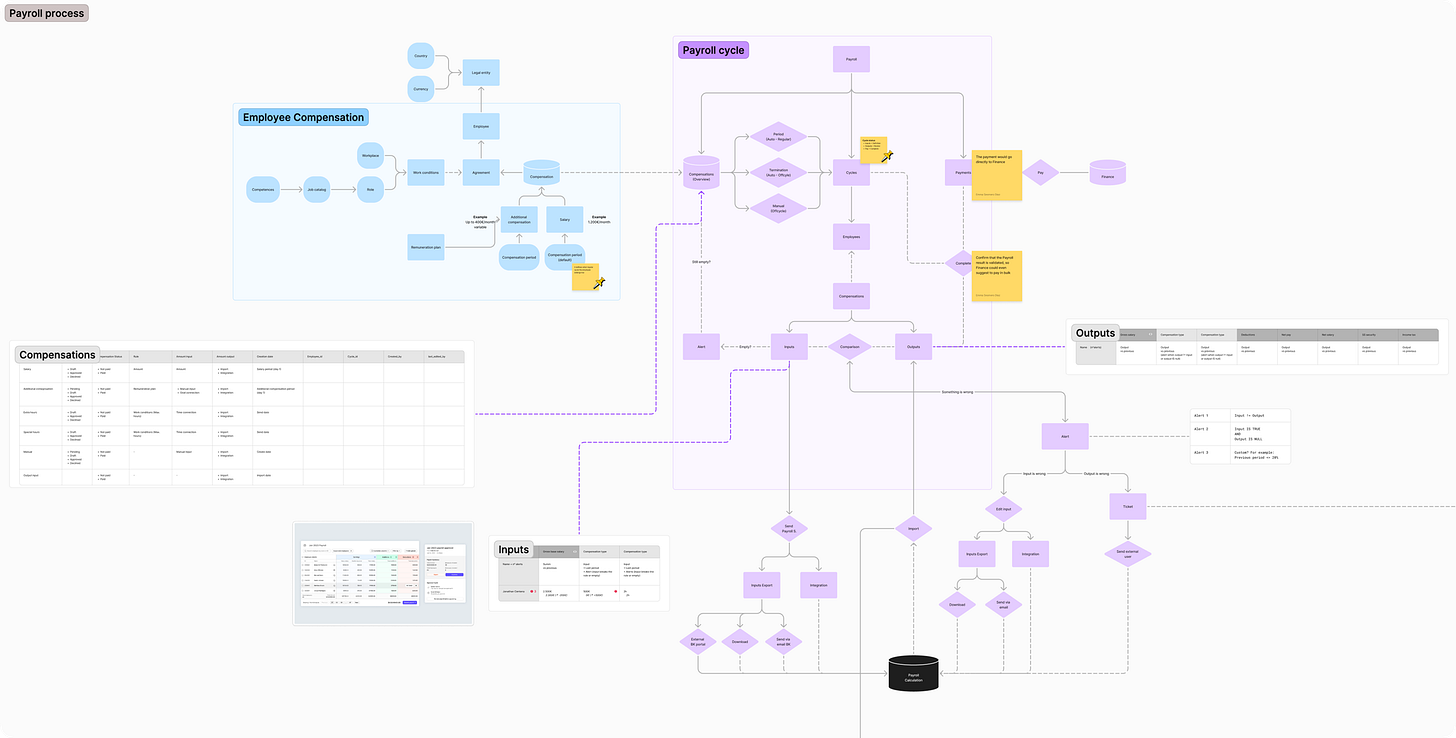 We started with diagrams: identifying the different pieces we’d need to assemble to solve the real system, not just one screen or one step.