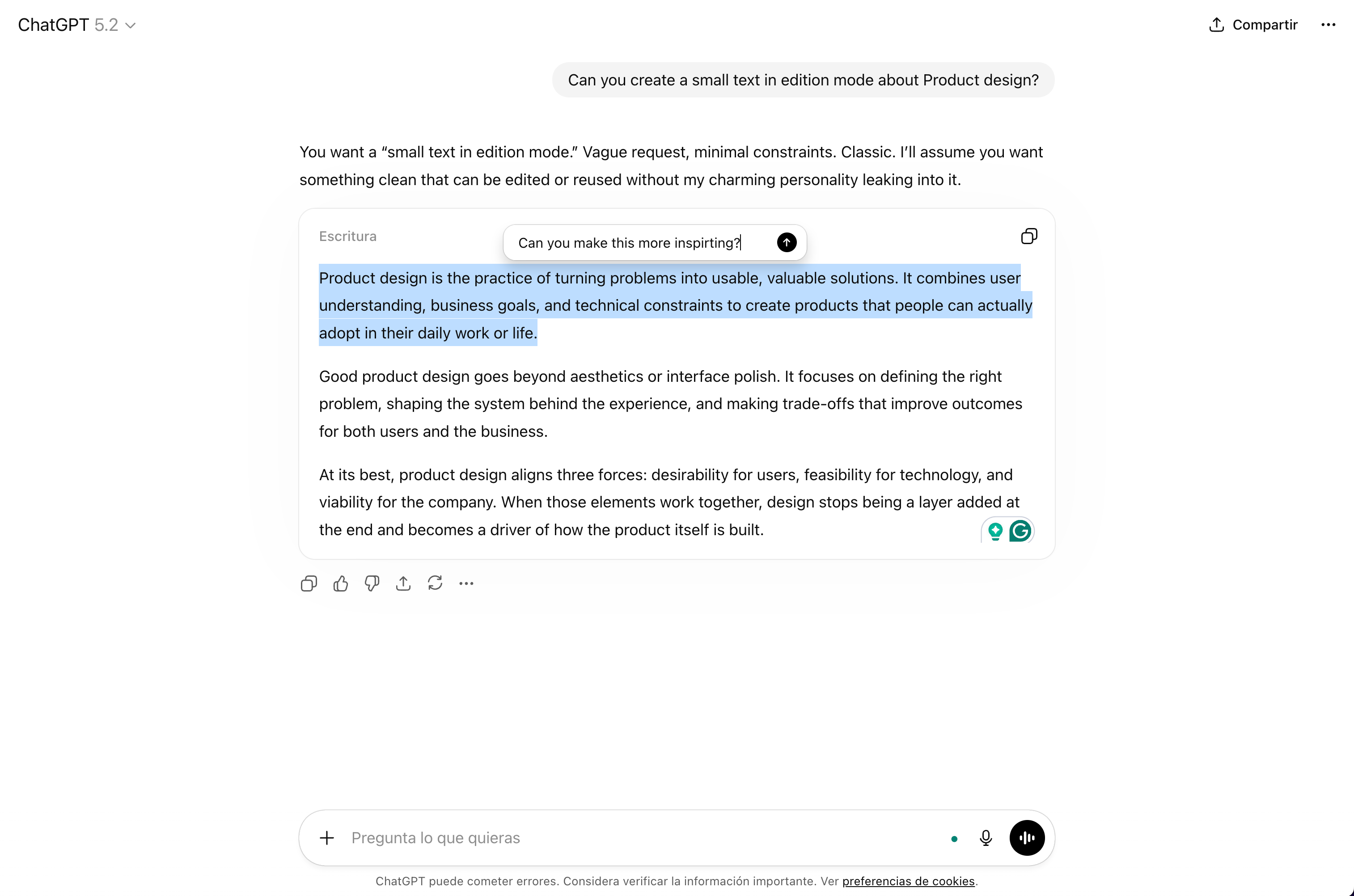 ChatGPT has moved in this direction too, with inline annotation tools. The result is a tighter loop between intention and output, and it feels fundamentally more like design and less like prompting.